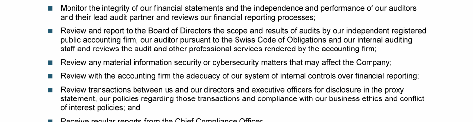 Agenda Item 9. Appointment of Ernst & Young LLP as the Company's Independent Registered Public Accounting Firm for Fiscal Year 2022 and Reelection of Ernst & Young Ltd, Zurich, as the Company's Auditor for a Further One-Year Term
