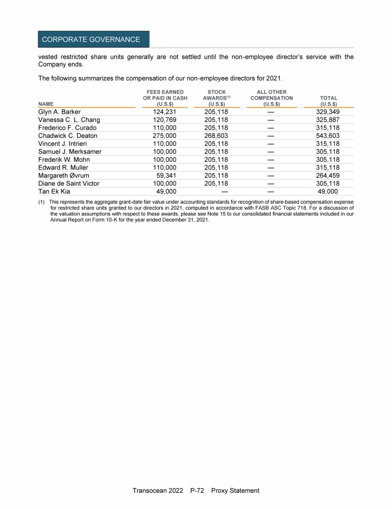 Agenda Item 1. Approval of the 2021 Annual Report, Including the Audited Consolidated Financial Statements of Transocean Ltd. for Fiscal Year 2021 and the Audited Statutory Financial Statements of Transocean Ltd. for Fiscal Year 2021