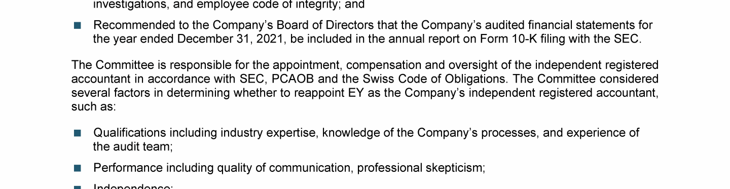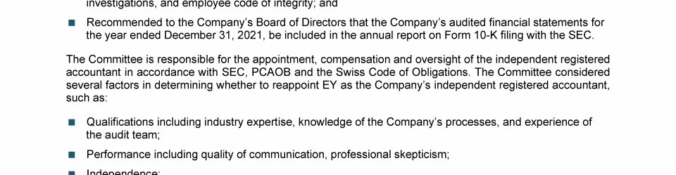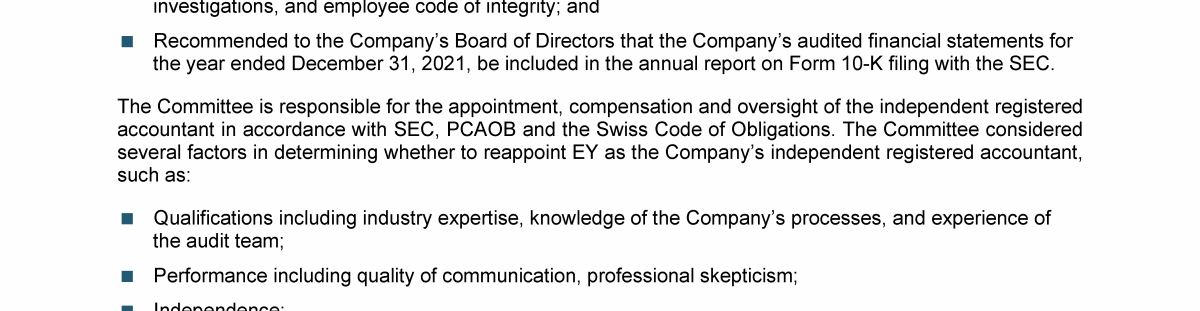Agenda Item 9. Appointment of Ernst & Young LLP as the Company's Independent Registered Public Accounting Firm for Fiscal Year 2022 and Reelection of Ernst & Young Ltd, Zurich, as the Company's Auditor for a Further One-Year Term