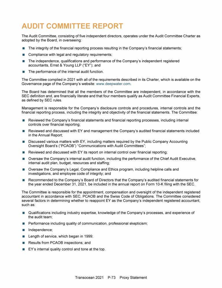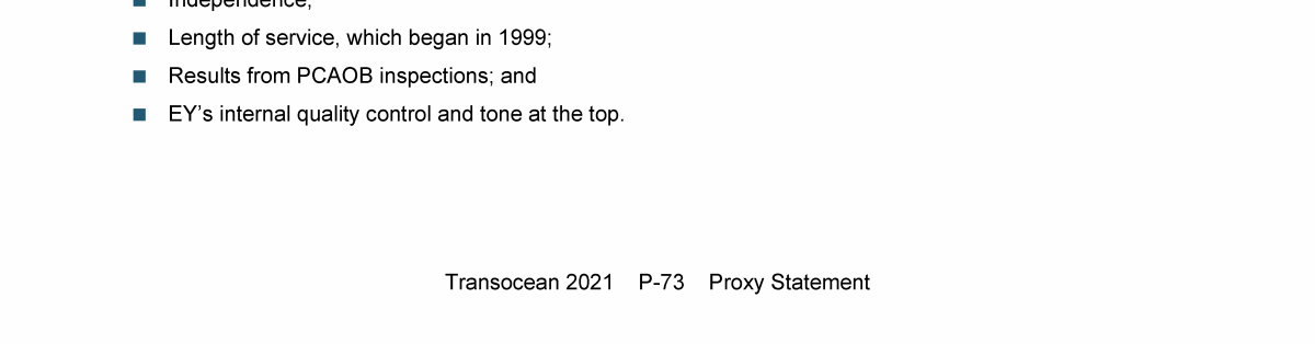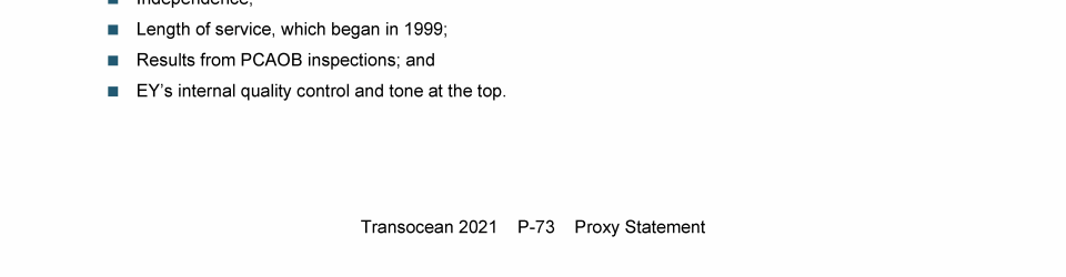Agenda Item 1. Approval of the 2021 Annual Report, Including the Audited Consolidated Financial Statements of Transocean Ltd. for Fiscal Year 2021 and the Audited Statutory Financial Statements of Transocean Ltd. for Fiscal Year 2021