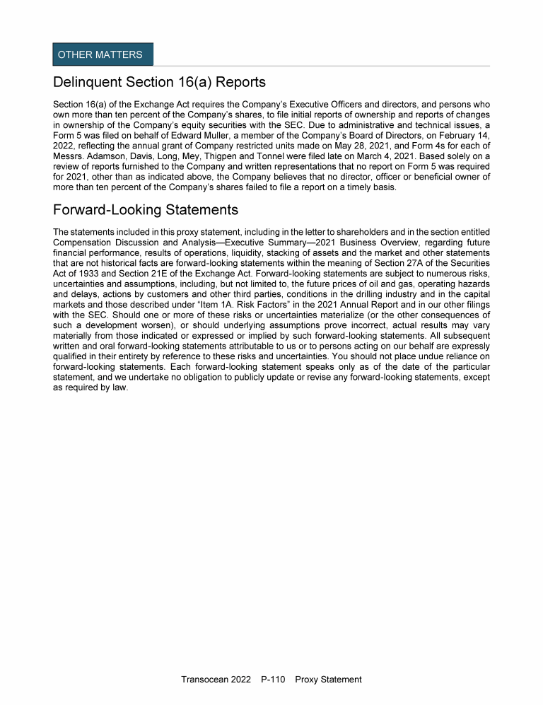 Invitation to 2022 Annual General Meeting of Transocean Ltd.