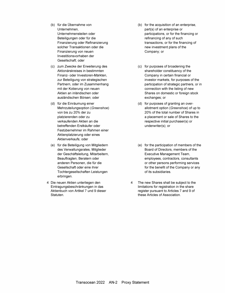 Invitation to 2022 Annual General Meeting of Transocean Ltd.