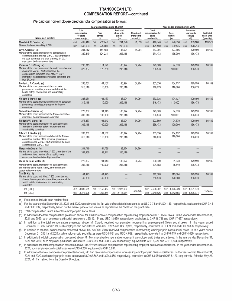Agenda Item 1. Approval of the 2021 Annual Report, Including the Audited Consolidated Financial Statements of Transocean Ltd. for Fiscal Year 2021 and the Audited Statutory Financial Statements of Transocean Ltd. for Fiscal Year 2021