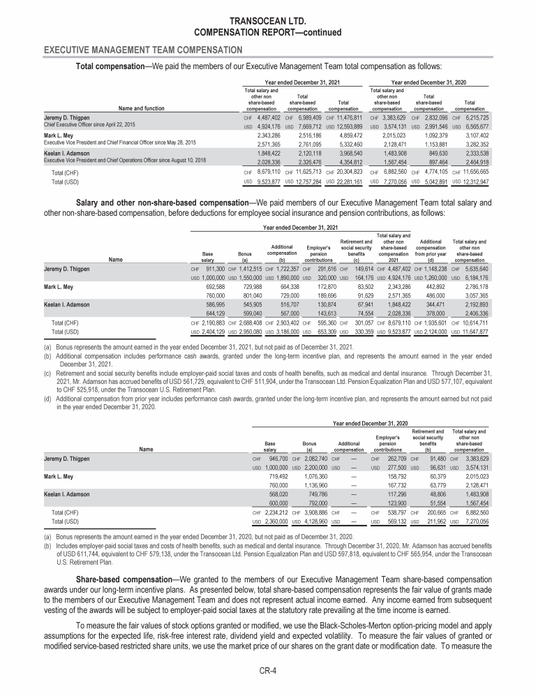 Agenda Item 1. Approval of the 2021 Annual Report, Including the Audited Consolidated Financial Statements of Transocean Ltd. for Fiscal Year 2021 and the Audited Statutory Financial Statements of Transocean Ltd. for Fiscal Year 2021
