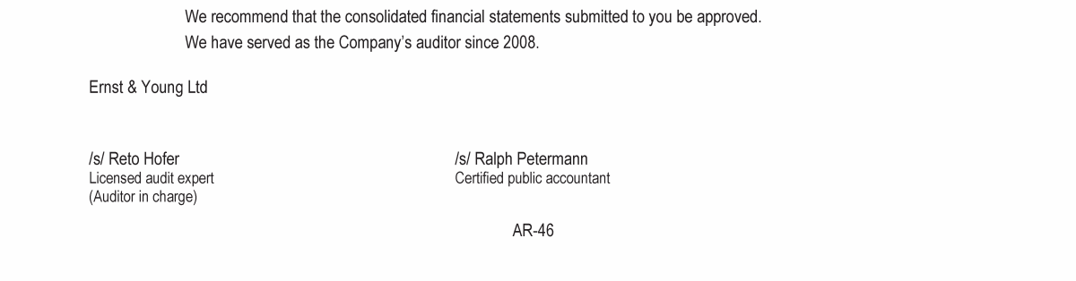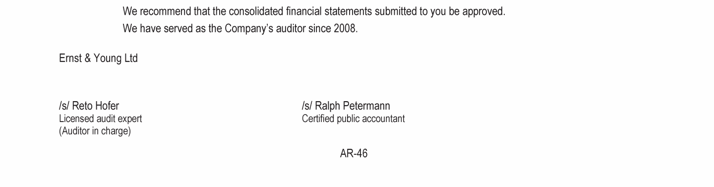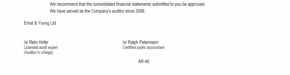 Agenda Item 9. Appointment of Ernst & Young LLP as the Company's Independent Registered Public Accounting Firm for Fiscal Year 2022 and Reelection of Ernst & Young Ltd, Zurich, as the Company's Auditor for a Further One-Year Term