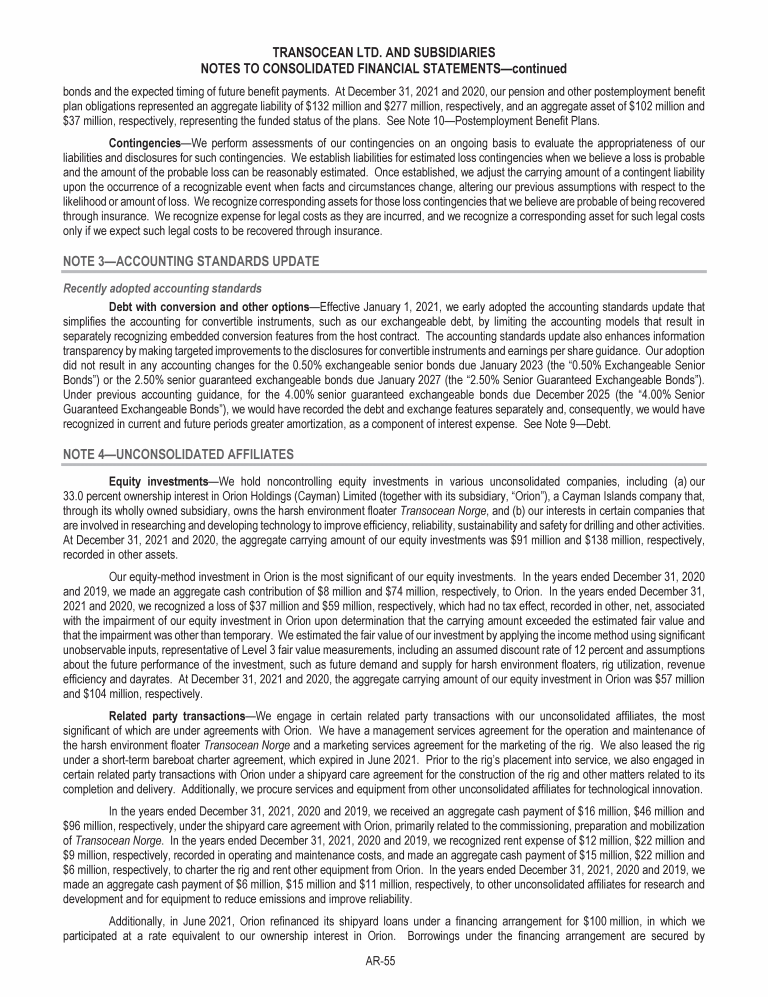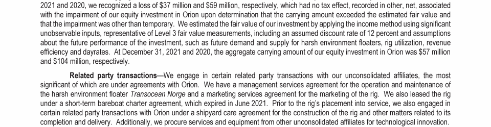 Agenda Item 1. Approval of the 2021 Annual Report, Including the Audited Consolidated Financial Statements of Transocean Ltd. for Fiscal Year 2021 and the Audited Statutory Financial Statements of Transocean Ltd. for Fiscal Year 2021