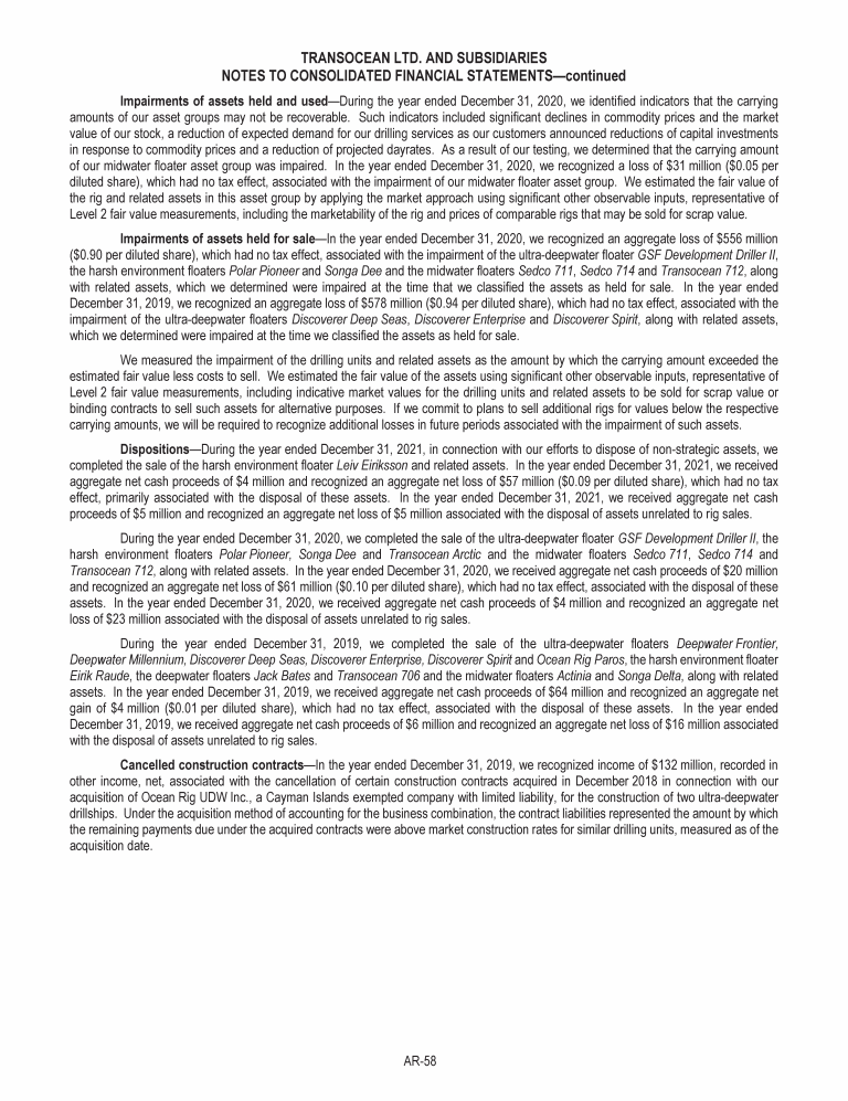 Agenda Item 1. Approval of the 2021 Annual Report, Including the Audited Consolidated Financial Statements of Transocean Ltd. for Fiscal Year 2021 and the Audited Statutory Financial Statements of Transocean Ltd. for Fiscal Year 2021