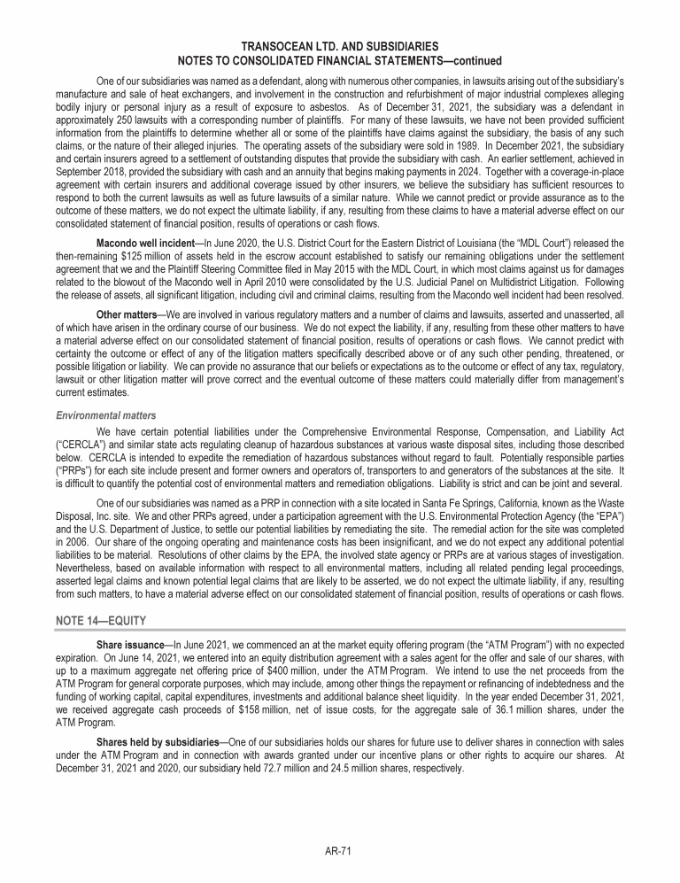 Invitation to 2022 Annual General Meeting of Transocean Ltd.