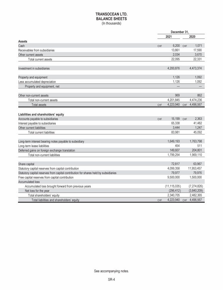 Agenda Item 1. Approval of the 2021 Annual Report, Including the Audited Consolidated Financial Statements of Transocean Ltd. for Fiscal Year 2021 and the Audited Statutory Financial Statements of Transocean Ltd. for Fiscal Year 2021