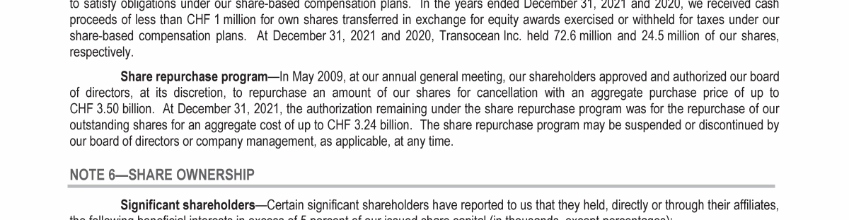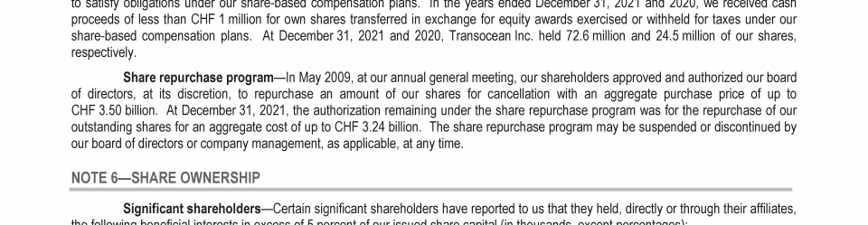 Invitation to 2022 Annual General Meeting of Transocean Ltd.