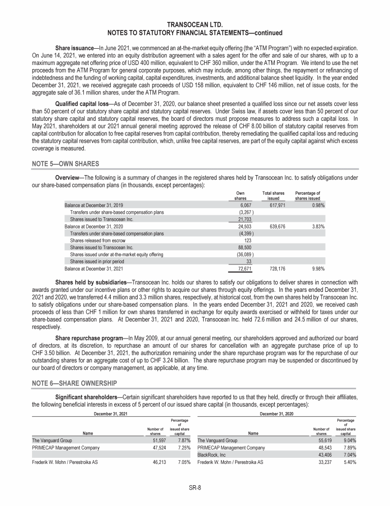 Agenda Item 1. Approval of the 2021 Annual Report, Including the Audited Consolidated Financial Statements of Transocean Ltd. for Fiscal Year 2021 and the Audited Statutory Financial Statements of Transocean Ltd. for Fiscal Year 2021