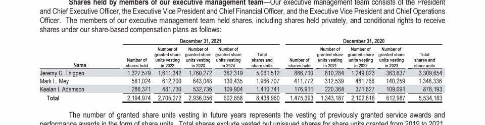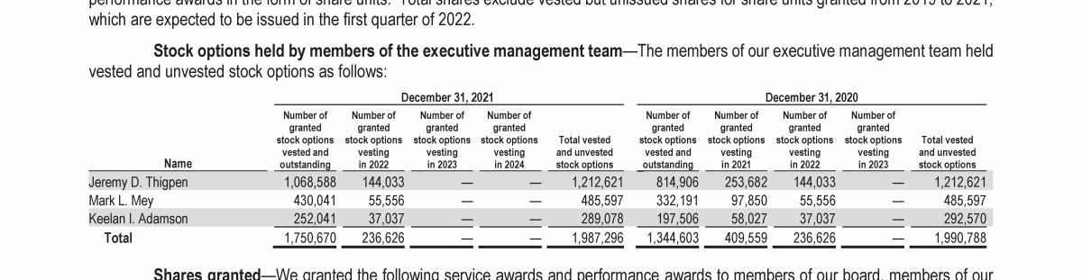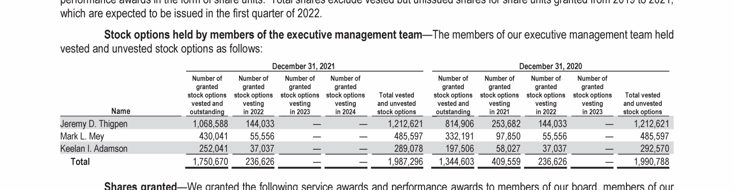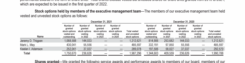- Outstanding Equity Awards at Year-End 2021