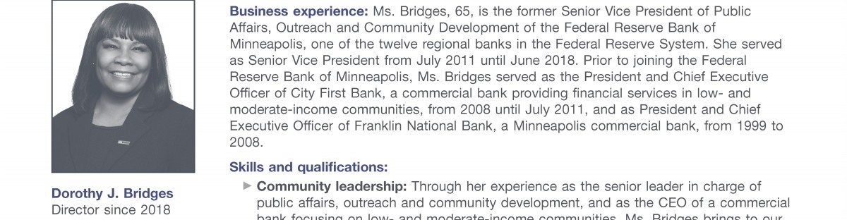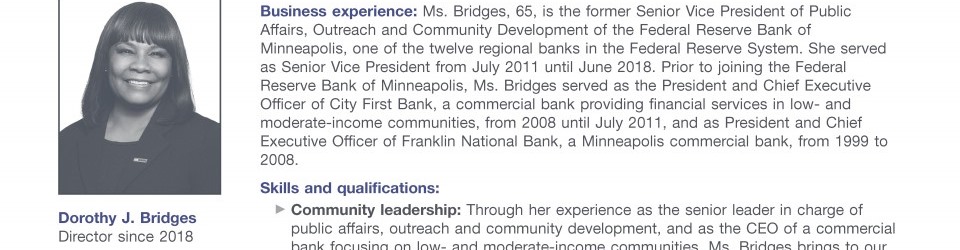 Review our director nominees' biographies, skills/qualifications, committees, and more in our interactive