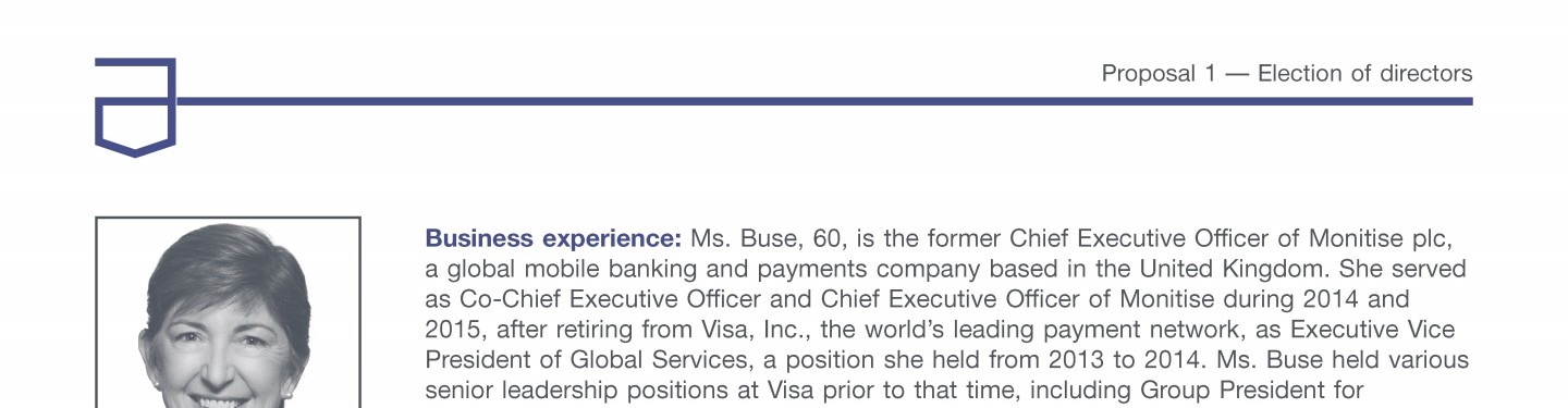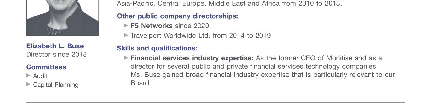 Review our director nominees' biographies, skills/qualifications, committees, and more in our interactive