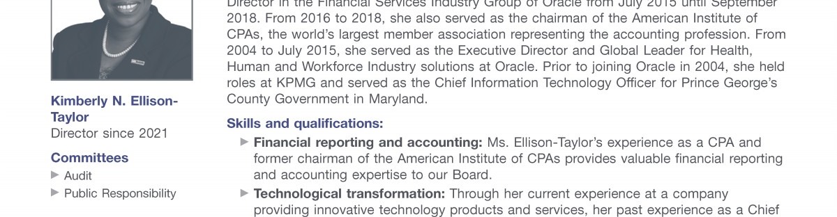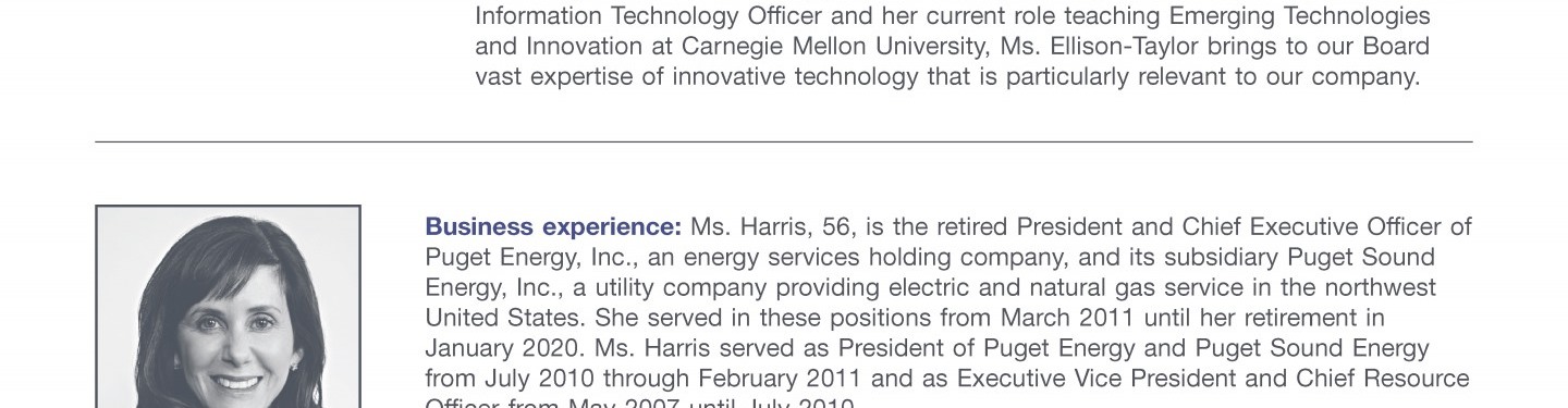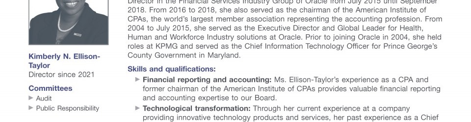 Review our director nominees' biographies, skills/qualifications, committees, and more in our interactive