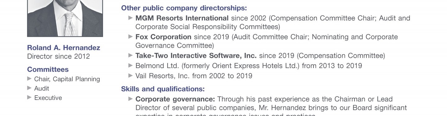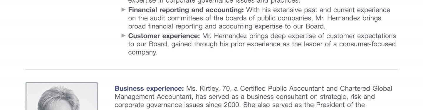 Review our director nominees' biographies, skills/qualifications, committees, and more in our interactive