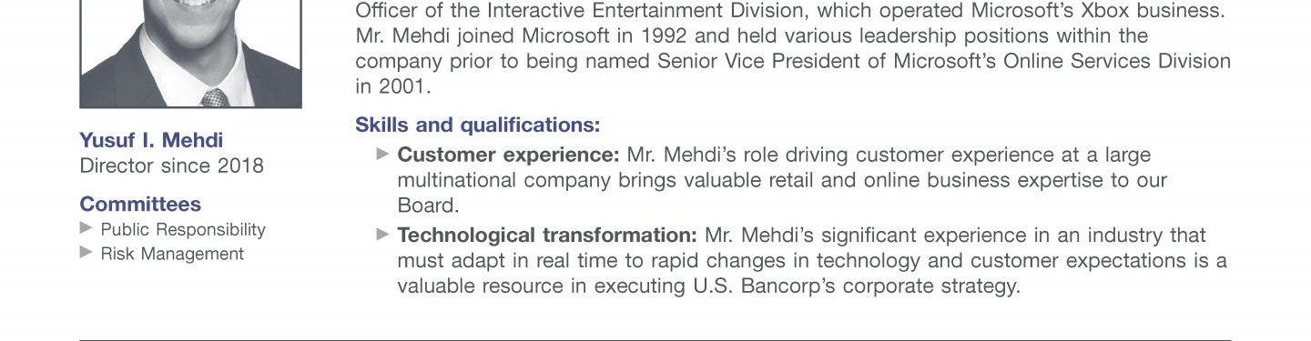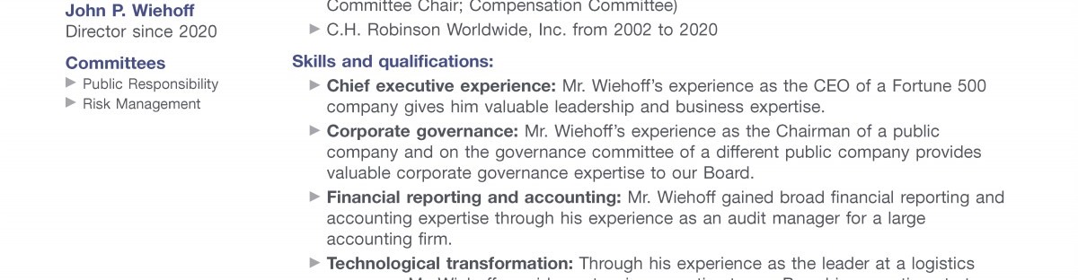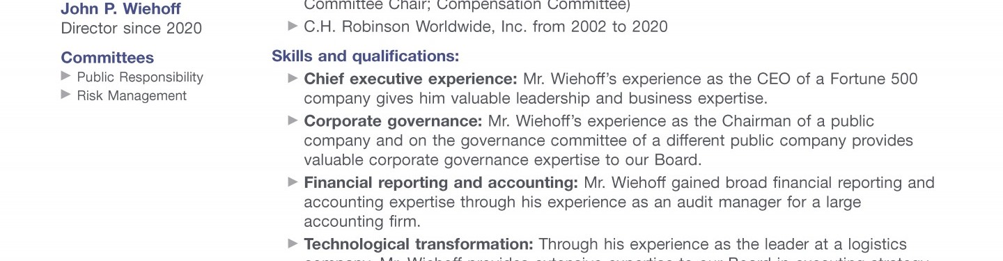 Review our director nominees' biographies, skills/qualifications, committees, and more in our interactive