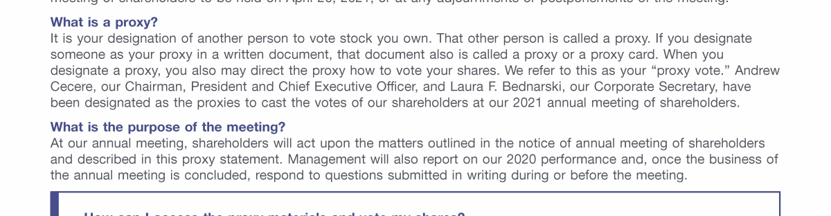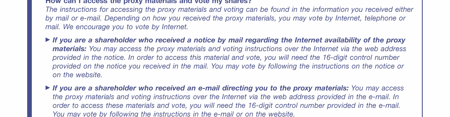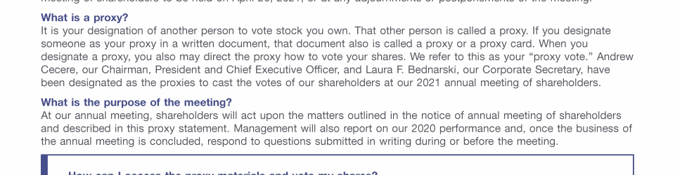 - Deadlines for Nominating Directors and Submitting Proposals for the 2022 Annual Meeting