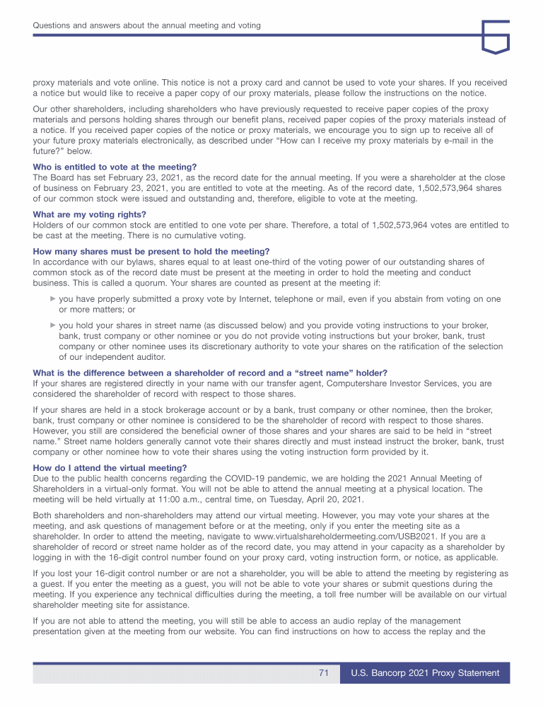 - Communicating with U.S. Bancorp's Board of Directors