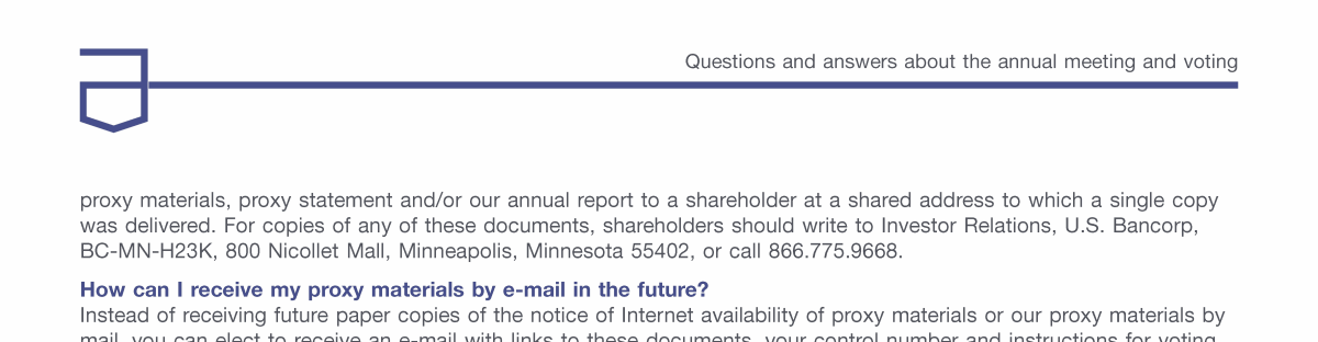 - Communicating with U.S. Bancorp's Board of Directors