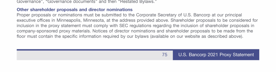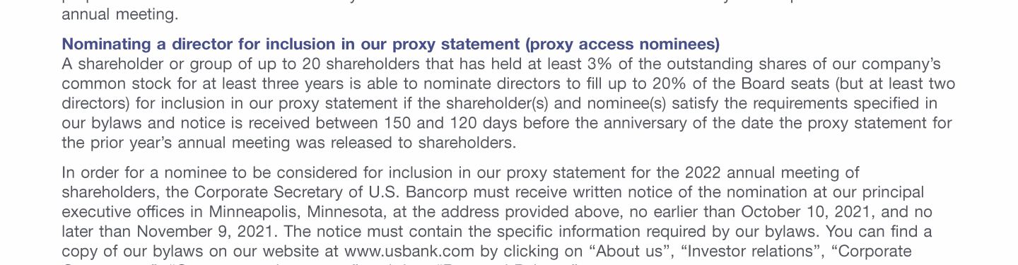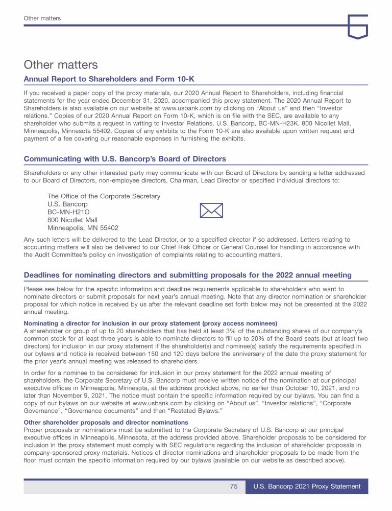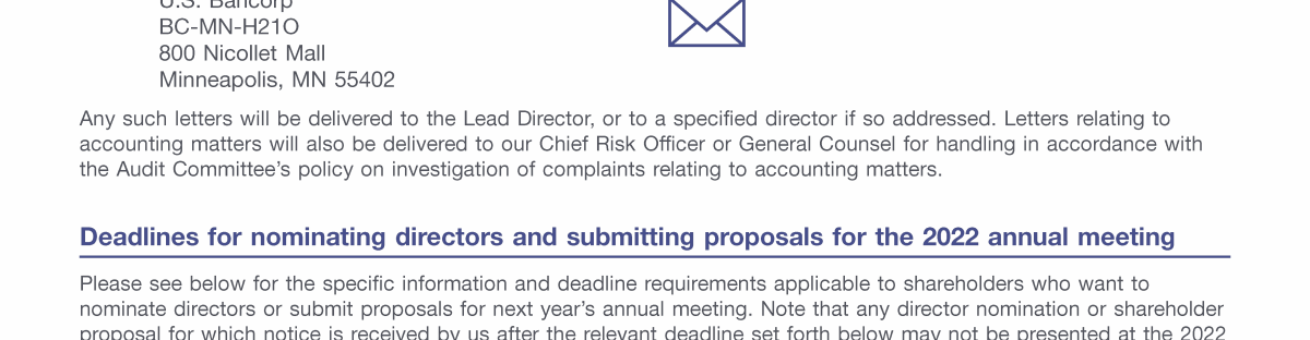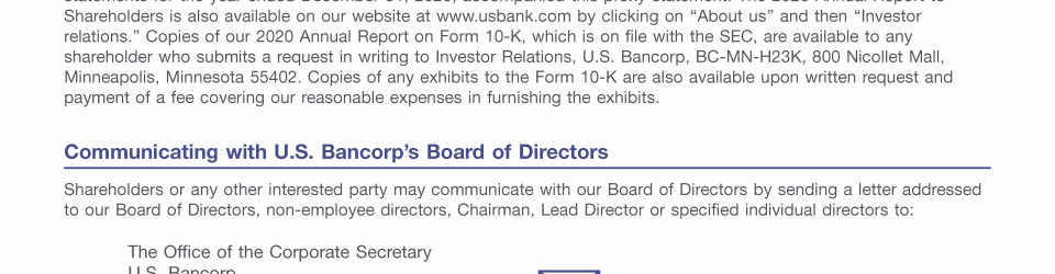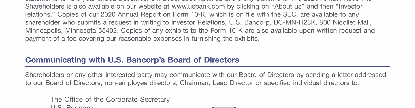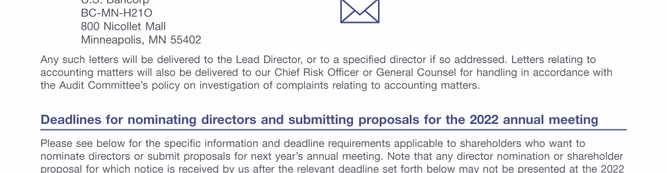 - Communicating with U.S. Bancorp's Board of Directors