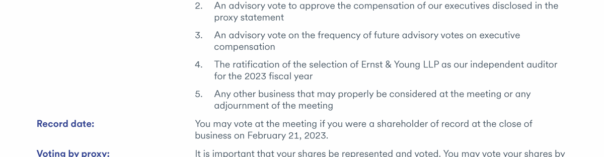 - Deadlines for Nominating Directors and Submitting Proposals for the 2024 Annual Meeting