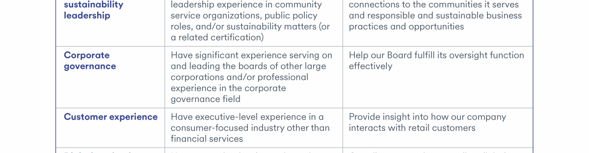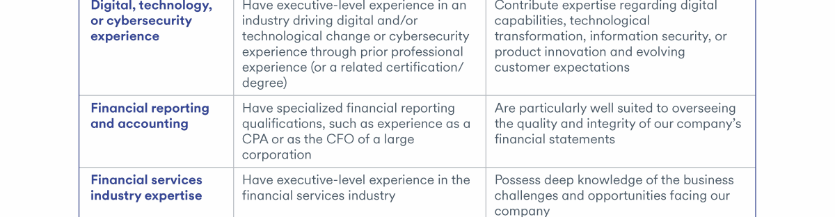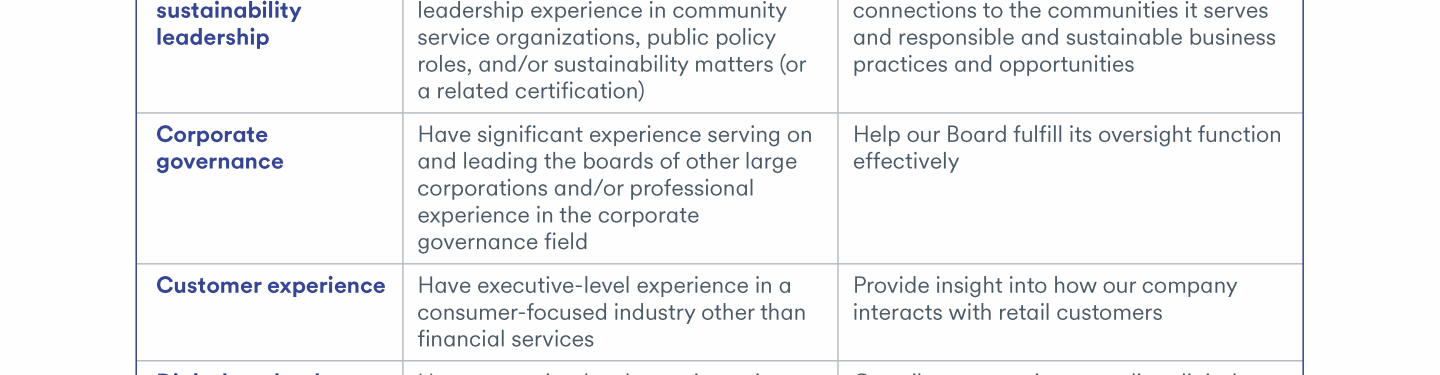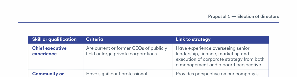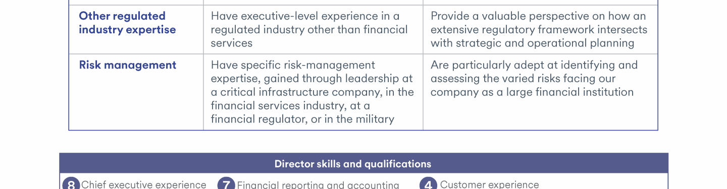Review our director nominees' biographies, skills/qualifications, committees, and more in our interactive