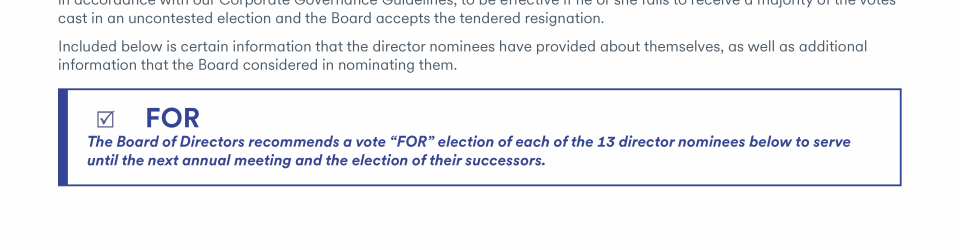 Review our director nominees' biographies, skills/qualifications, committees, and more in our interactive