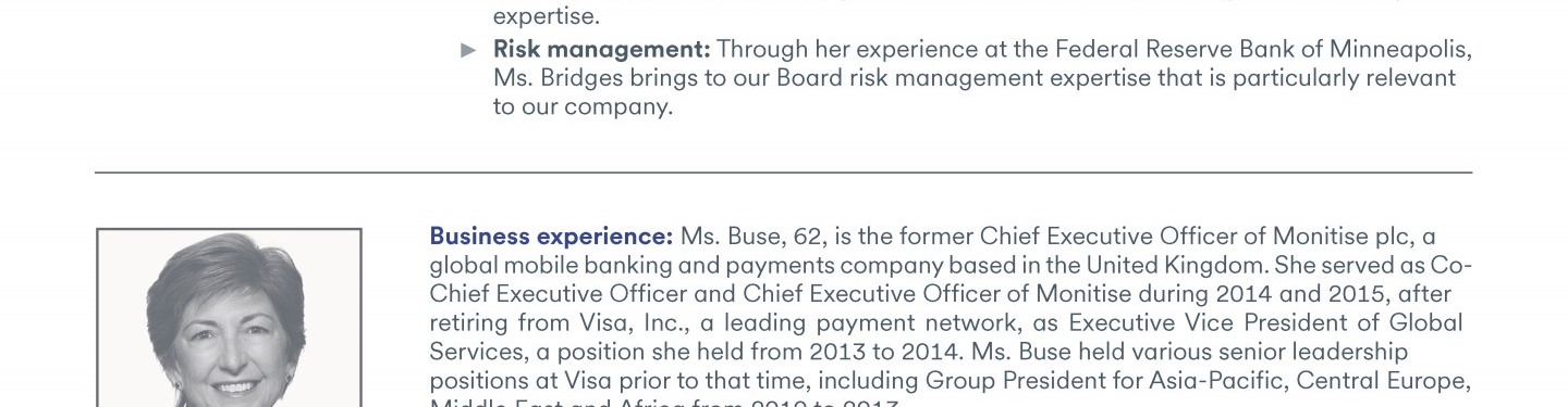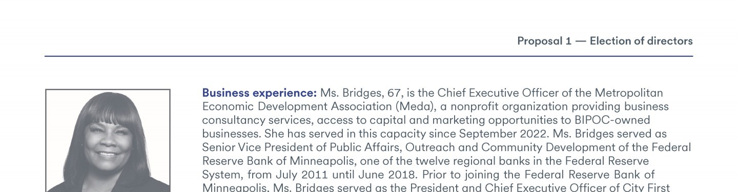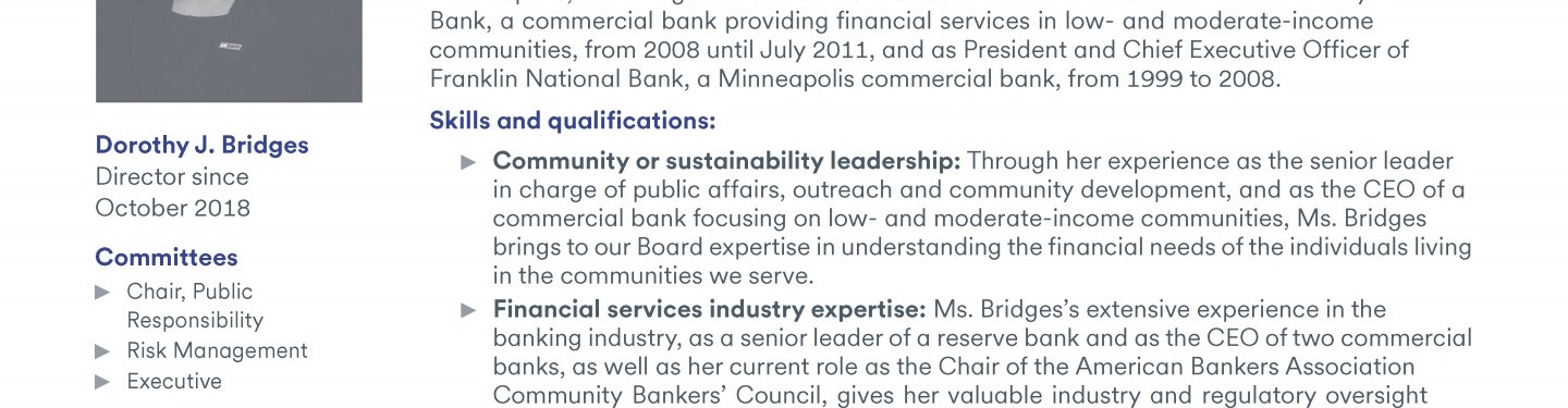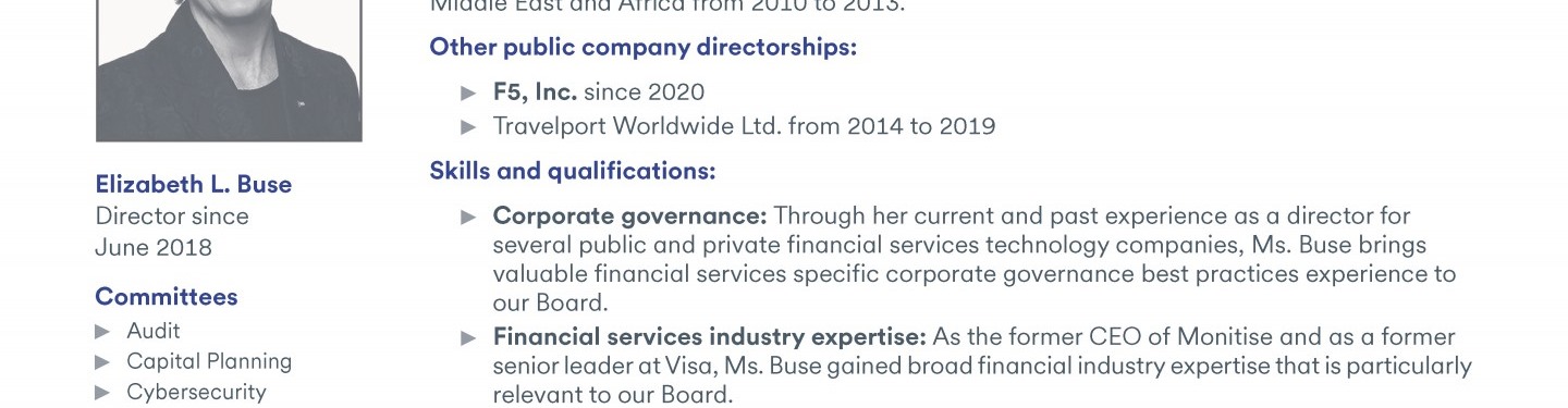 Review our director nominees' biographies, skills/qualifications, committees, and more in our interactive