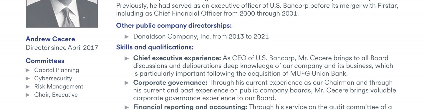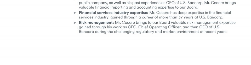 Review our director nominees' biographies, skills/qualifications, committees, and more in our interactive