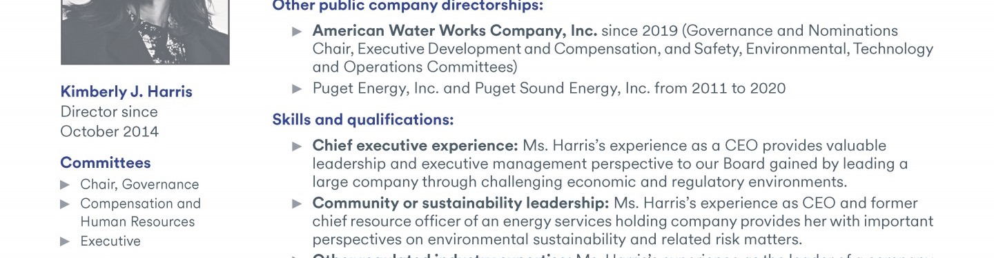 Review our director nominees' biographies, skills/qualifications, committees, and more in our interactive