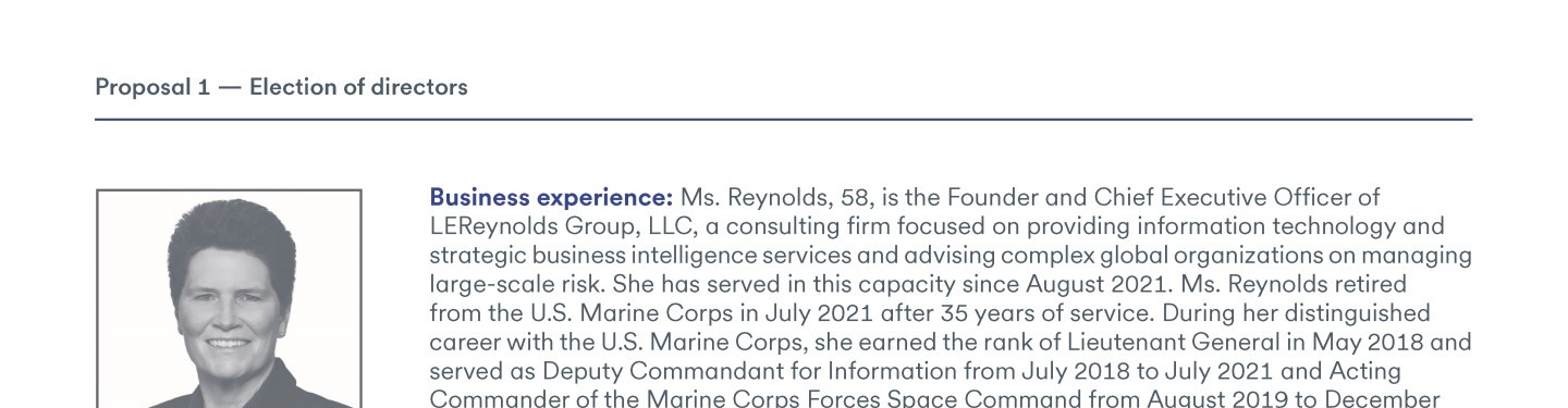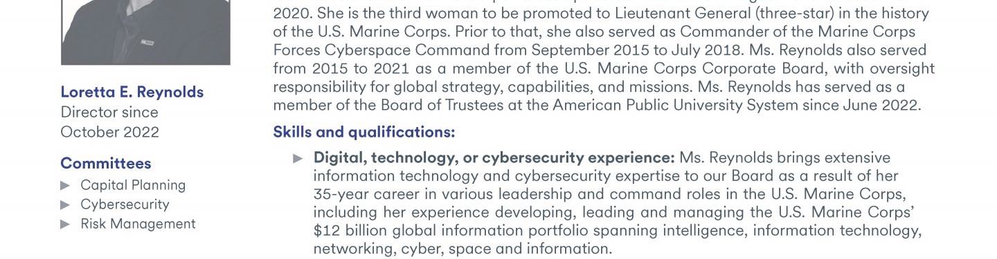 Review our director nominees' biographies, skills/qualifications, committees, and more in our interactive