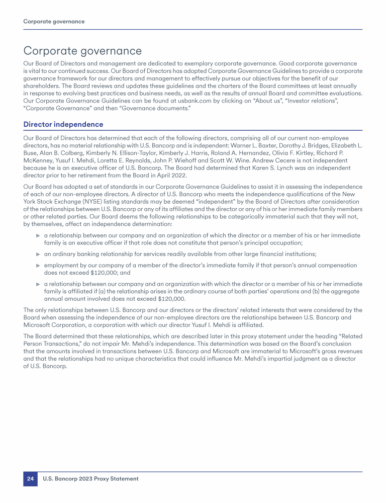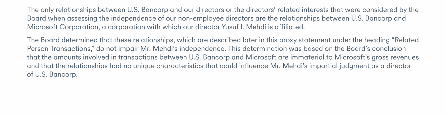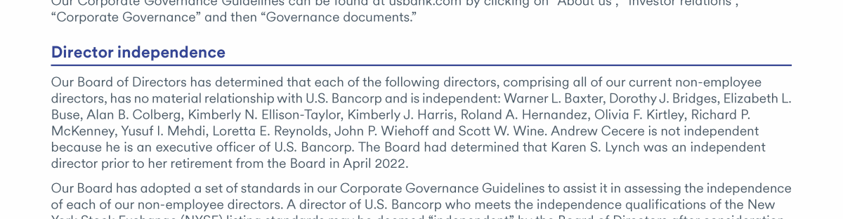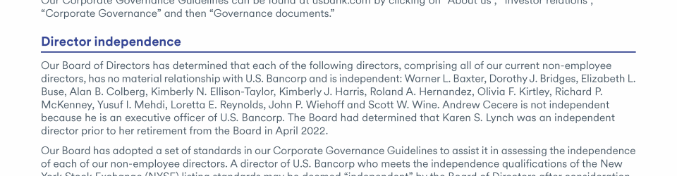 - Communicating with U.S. Bancorp's Board of Directors
