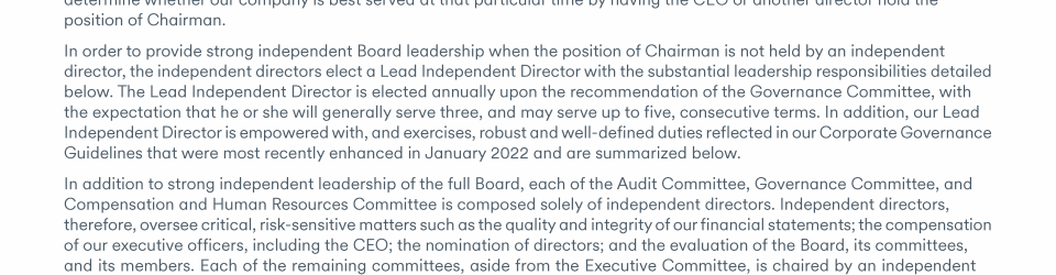 - Deadlines for Nominating Directors and Submitting Proposals for the 2024 Annual Meeting