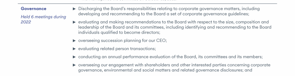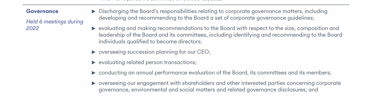 Review our director nominees' biographies, skills/qualifications, committees, and more in our interactive