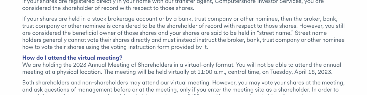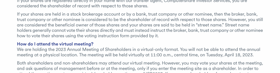 - Deadlines for Nominating Directors and Submitting Proposals for the 2024 Annual Meeting