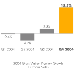 By the fourth quarter, To Our Shareholders, Customers, Agents and Employees: This annual report marks Infinitys second year as a public company. It has again been a successful one. Net earnings of $96.4 million were 66% higher than in 2003; diluted net earnings per share were 63% higher; book value per share was up by 19%; and return on average equity soared to 17%. In early 2005, we took further actions to enhance shareholder value by increasing our dividend by 9.1% and putting in place a $50 million share repurchase program. Our total return to shareholders since our IPO in February 2003 is 120%. Strong performance during 2004 and a conservatively managed balance sheet contributed to our retaining an A.M. Best financial strength rating of A. In todays competitive environment, maybe more than ever, we see this Excellent rating as an imperative when competing for agents who need to assure that their customers are placed with a stable and strong insurer. A Strong Finish Leads To A Promising Start The theme for this years Report, Unlimited Opportunities, is much more than an optimistic expression of the possibilities we see in the coming year. The relevance of this theme has as much to do with where we have been as where we see ourselves heading. This is because opportunities for us in 2005 began with a well developed operating strategy, the setting of both short and long-term priorities, and the efforts of employees willing to devote themselves to, and be held accountable for, the successful execution of a sound business plan. In last years letter, I identified the following priorities for 2004. I would grade our overall performance as a success, but I see room for continued improvement in many of these areas in 2005.