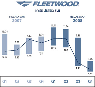 As of July 1, 2008, Fleetwood had approximately 900 shareholders of record. CERTIFICATION DISCLOSURE Because our common stock is listed on the New York Stock Exchange ("NYSE"), our chief executive officer is required to make, and has made, an annual certification to the NYSE stating that he was not aware of any violation by Fleetwood of the corporate governance listing standards of the NYSE. The last certification to that effect was made last year following our shareholder meeting. The Company also filed the CEO and CFO certifications required under Section 302 of the Sarbanes-Oxley Act of 2002 with the Securities and Exchange Commission as exhibits to its Annual Report on Form 10-K for the year ended April 27, 2008. SPECIAL NOTE REGARDING FORWARD-LOOKING STATEMENTS Statements used in this report that relate to future plans, events, financial results or performance are forward-looking statements as defined under the Private Securities Litigation Reform Act of 1995. These statements are based on the beliefs of Fleetwood's management as well as assumptions made by, and information currently available to, the Company's management. The forward-looking statements are subject to certain risks and uncertainties, including risk factors identified in Fleetwood's 10-K, including the sections entitled "Business Outlook" and "Risk Factors." These risks and uncertainties include, without limitation, the lack of assurance that we will regain sustainable profitability in the foreseeable future; the effect of ongoing weakness in both the manufactured housing and the recreational vehicle markets; the effect of a decline in home equity values, volatile fuel prices and interest rates, global tensions, employment trends, stock market performance, availability of financing generally, and other factors that can and have had a negative impact on consumer confidence, which may reduce demand for our products, particularly recreational vehicles; the availability and cost of wholesale and retail financing for both manufactured housing and recreational vehicles; our ability to comply with financial tests and covenants on existing debt obligations; our ability to obtain, on reasonable terms if at all, the financing we will need in the future to execute our business strategies and to meet the repayment terms of our outstanding convertible debt instruments, including the 5% convertible senior subordinated debentures; potential dilution associated with equity financings we may undertake to raise additional capital and the risk that the equity pricing may not be favorable; the cyclical and seasonal nature of both the manufactured housing and recreational vehicle industries; the increasing costs of component parts and commodities that we may be unable to recoup in our product prices; the potential for excessive retail inventory levels in the manufactured housing and recreational vehicle industries; the volatility of our stock price; repurchase agreements with floorplan lenders, which could result in increased costs; potential increases in the frequency of product liability, wrongful death, class action, and other legal actions, including actions resulting from products we receive from our suppliers; and the highly competitive nature of our industries. Fleetwood Enterprises, Inc. is an equal opportunity employer. Editor: Kathy A. Munson Design: Ervin | Bell Marketing Communications Lithographer: Southern California Graphics |