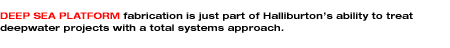 The subsea work will involve the manufacture of 28,000 tons of flowlines by Halliburtons Wellstream unit. Halliburton Subsea will install the risers, flowlines, umbilicals and seabed fixtures in water depths from 2,500 feet to 4,000 feet.