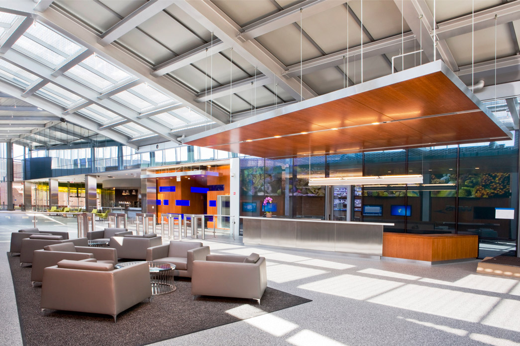 Our new LEED®-platinum designed Technology Development Center, from its stunning lobby (pictured) with dynamic digital mural to collaborative meeting areas, advances WMS' commitment to sustainability and innovation in a workplace designed to inspire creativity, teamwork and productivity.