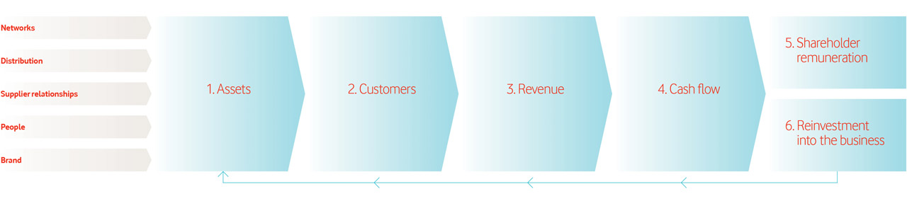 We buy licences that give us rights to spectrum bands and we build networks over which we provide calls, SMS and mobile internet services to customers.