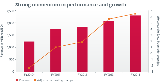 As we look back on fiscal 2014, it is clear that our unique strategy and leadership continued to translate into strong financial results. We gained market share and grew the top line by 10 percent. Moreover, we delivered profitable growth. Our adjusted operating margin was 6.5 percent, reflecting a 28 percent increase in our adjusted operating profit.