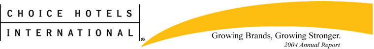Choice Hotels International, Inc. and subsidiaries (together the Company) is in the business of hotel franchising. As of December 31, 2004, the Company had franchise agreements representing 4,977 open hotels and 569 hotels under development in 49 states and more than 40 countries and territories outside the United States under the brand names: Comfort Inn, Comfort Suites, Quality, Clarion, Sleep Inn, Econo Lodge, Rodeway Inn, MainStay Suites and Flag Hotels.