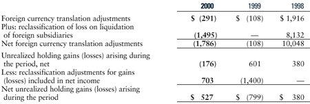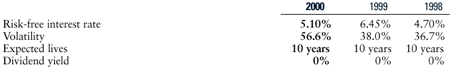 weighted-average assumptions used for grants in 2000, 1999 and 1998: