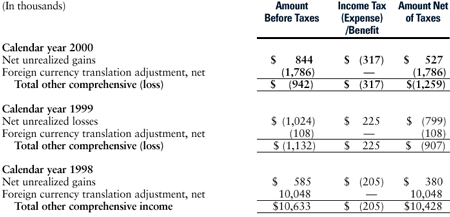 income tax effect allocated to each component of other comprehensive