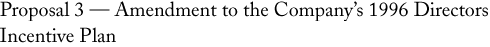 and restatement of the Companys 1996 Directors Incentive Plan, as previously