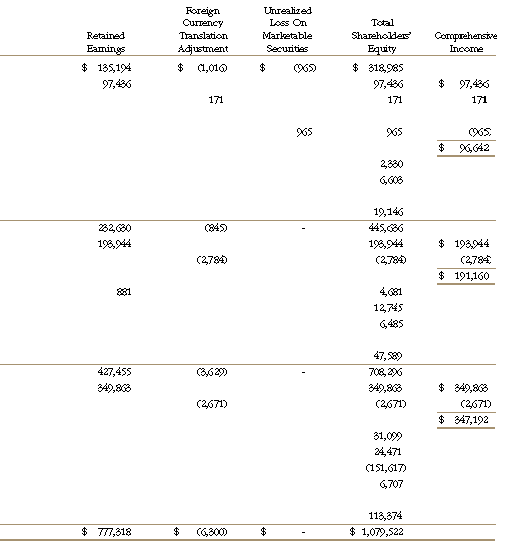 CORPORATION AND SUBSIDIARIES CONSOLIDATED STATEMENTS OF SHAREHOLDERS' EQUITY |