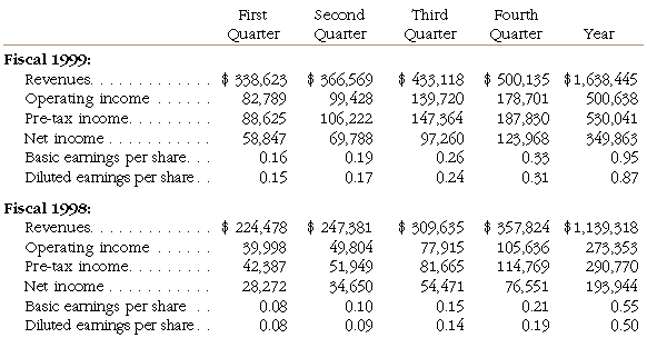 QUARTERLY FINANCIAL INFORMATION (UNAUDITED)