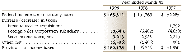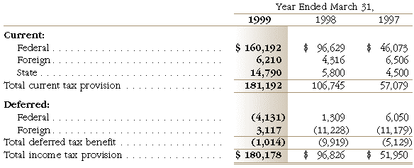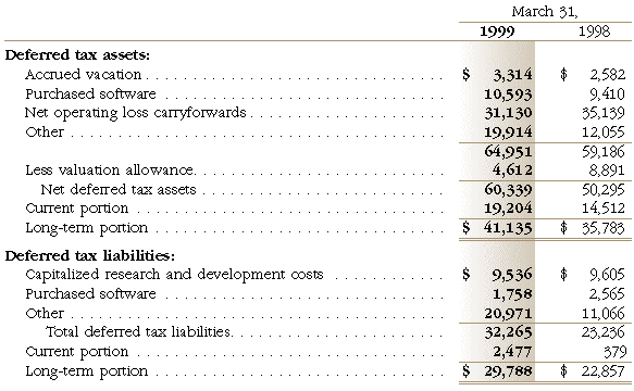 Of this amount, approximately $3,472,000 is available to offset U.S. federal income taxes and approximately $93,517,000 relates to various foreign jurisdictions. In addition, approximately $957,000 of tax credits expiring through the year 2009 are available to offset future U.S. federal income tax liabilities. Cash paid for income taxes totaled approximately $28,332,000, $55,481,000 and $46,760,000 for the years ended March 31, 1999, 1998 and 1997, respectively.