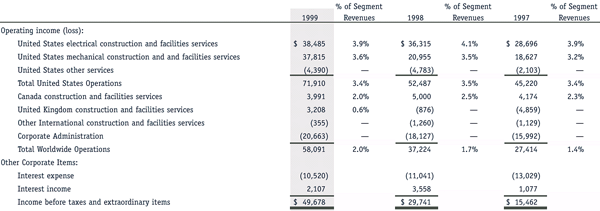 over 1998 amounts primarily due to growth of EMCOR's existing businesses